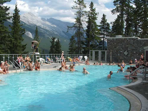 Another day we took the bus to Banff's Upper Hot Springs. Pretty fancy place, but nice to soak in the 104°F sulphurous water. The original hot springs at the Cave and Basin which led to the settlement in Banff are now closed.