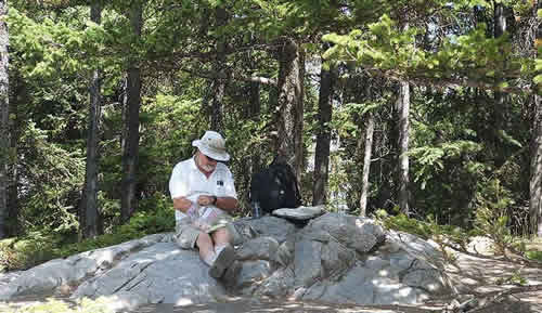 We brought our lunch to eat at the top of Tunnel Mountain. A chipmunk came looking for crumbs, and we got a magnificent display by two ravens dancing: whirling and back-flips; waltzing and diving; floating round on the breeze; having a whale of a time (us too.) Sadly no pix.