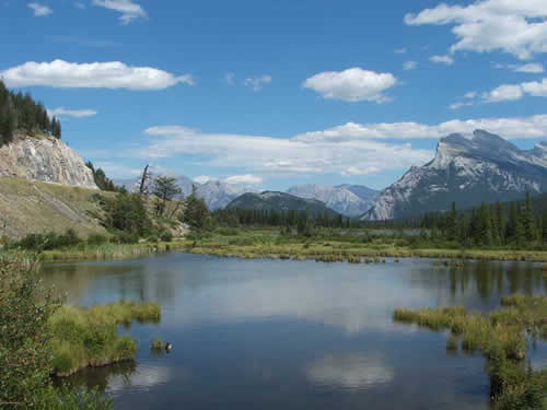 We biked along the Vermillion Lakes to the end of the third one. Here's the view looking back east towards Banff with Mt. Rundle on the right. Plenty of exercise today. We rode to the bus stop at the fire station and loaded our bikes onto the bus' bike rack to take us up the hill and home.