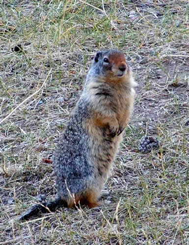A Columbian ground squirrel (gopher) had a hole just beside our campsite, here he is checking us out. These very territorial little critters chatter relentlessly sometimes, sounding just like a squeaky bicycle pump.