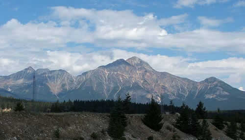 With our one full day in Jasper, we decided to drive Clemmie to the Maligne Canyon. On the way we got a great view of Pyramid Mountain, in all its multiferous colors, reflecting the different rocks of which it's made.