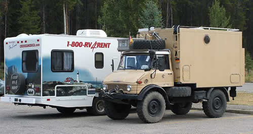In the parking lot at the trailhead into the Maligne Canyon, we found these two extremes showing how people visit isolated places. Klaus, the truck on the right from Germany, has been across the Sahara. We saw hundreds (literally) like the one on the left.