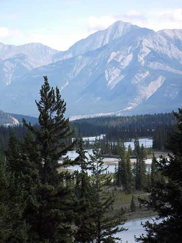 Returning home, we got a fine view of the Athabasca River, into which the Maligne flows - scroll down for full picture. The Athabasca flows north, eventually into the Beaufort Sea. Our plan to ride the Tram up the Whistlers afterwards was derailed by the weather.