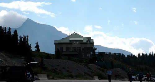 Since we arrived before the day's bus crowds, we stopped at the Columbia Icefield Center to view the exhibits. The huge icefield feeds 3 oceans: by the Columbia River to the Pacific; by the Athabasca to the Arctic Ocean; and by the Saskatchewan River to the Atlantic via Hudson Bay.
