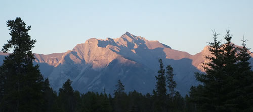 We took the bus back up to our campground where we sat and baked until near sunset. Then one of us biked around and took photos while the other fixed a flat bike tire acquired on our road trip from Moose Jaw. This is Mt. Girouard from the campground.