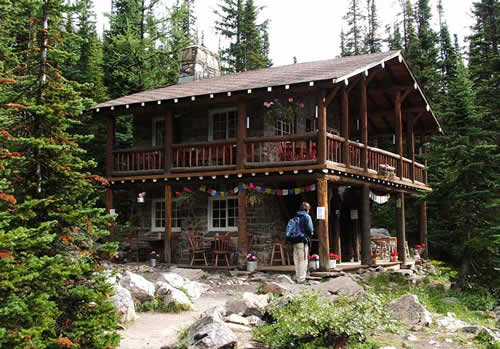 Here's the Tea House at the top of the trail. It was built by the Canadian Pacific Railroad in 1924 with the help and advice of Swiss guides, to initially serve as a warming hut for climbers. Now a staff of 5 lives up here and with helicopter drops of supplies offers hikers coffee and lunch.