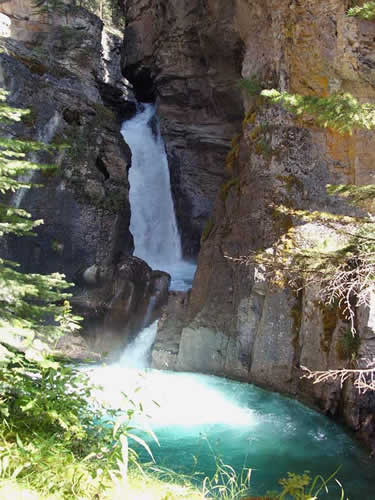 From Moraine Lake, we drove to Johnstone Canyon on the Bow Valley Parkway, approximately half way between Banff and Lake Louise. We walked to the canyon's lower falls, the most heavily used trail in the park. It was jammed with people, as was the parking lot.