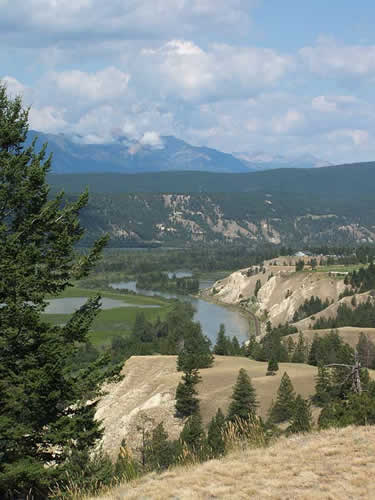 At Kootenay's southwestern edge is Radium Hot Springs. We decided to press on, for now, and not stop today. This photograph shows the Columbia River bounding Kootenay National Park to the west. This was our last clear view in the Rockies. More forest fires were burning and as we travelled south through BC from here our views were frequently hidden in smoke.