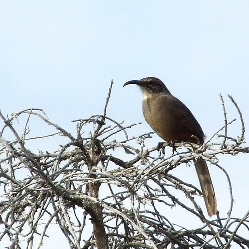 Relatives of the mockingbird and also known for their vocal and mimicking ability, thrashers feed on insects and fruit. They dig vigorously while hunting for insects, tossing dirt and sand around - hence the name.