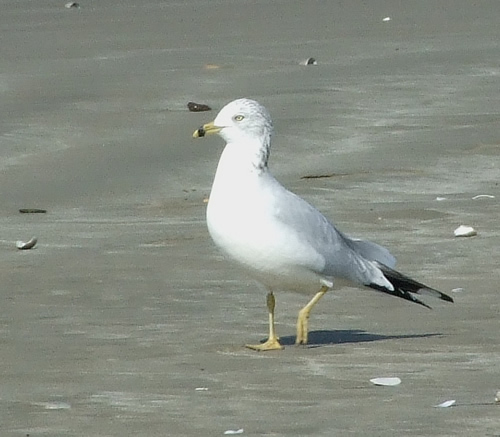 Widespread and frequently found in supermarket parking lots across the US, these gulls are also found at the shore. Note the broad black bill ring, yellow legs, and very pale iris.
