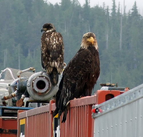 Juvenile and older sibling Bald Eagles, Prince Rupert, BC. 6/07 |