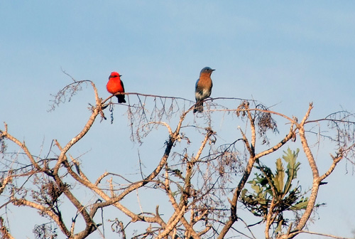 Vermillion Flycatcher and Eastern Bluebird, Colima. 2/07 |