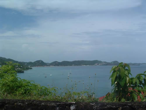 Soon after we arrived, our grandson Nicky arrived to visit for a month. We discovered we had become a "Kid Boat!" We caught a bus to see the capital, St. George. Here's the view at the harbour entrance. [Scroll down for full pic.]