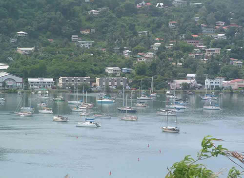 Off the harbour at St. George's there is a completely protected lagoon - we didn't anchor there, preferring to be in places that flushed well so we could swim over the side. Here's the lagoon before it got flattened by Hurricane Ivan in 2004.