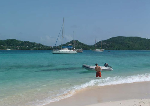 Still at Sandy Island, playing in the water and enjoying the snorkeling. After the catamaran left, we brought supper ashore and ate it on the beach.
