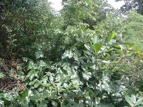 Grenada is mountainous and lush, with houses hanging onto hillsides every which way. This is typical roadside greenery.