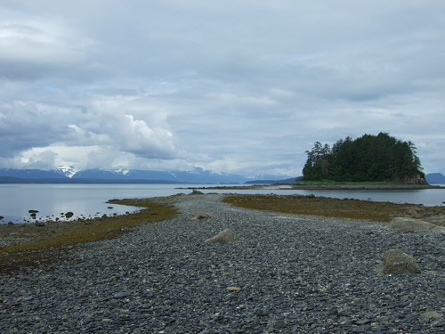 We drove to the north end of Douglas Island and hiked through the rainforest to Outer Point, a favorite place. The tide was out, but (as usual) the view was spectacuar.