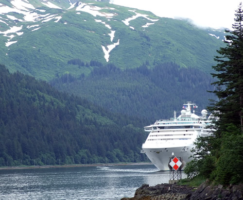 Here's a cruise ship stealing up the Gastineau Channel to Juneau on the 4th of July.