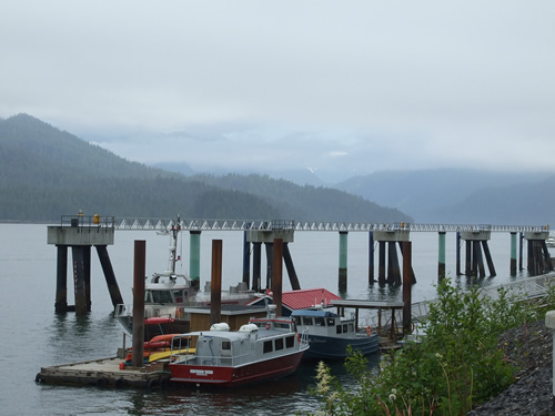 It was damp and foggy on the day we explored Prince Rupert. Our second day it just poured so we didn't do much more exploring. Here we caught a vague hint of sunlight striking the distant mountains.
