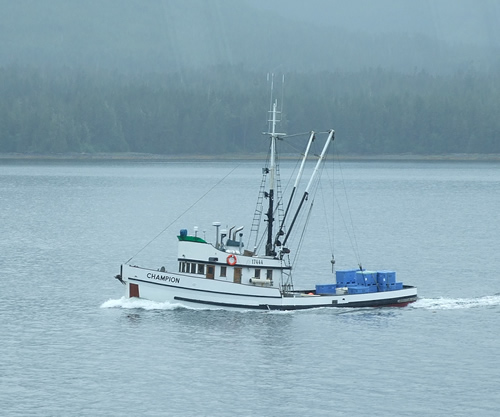 To round out this boat trio, here's a fishing boat we saw near Ketchikan. Alaska's forward looking consitution prohibits fish farming, and that state's efforts focus instead on hatchery programs to increase wild stocks.