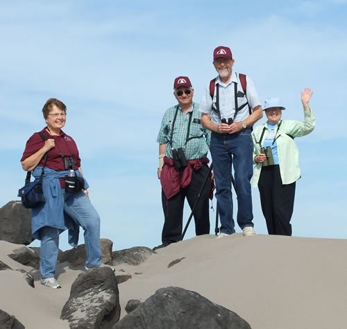 Here are Barb, Jim, Don and Betty taking a short break from birding on the beach of Peso Island.