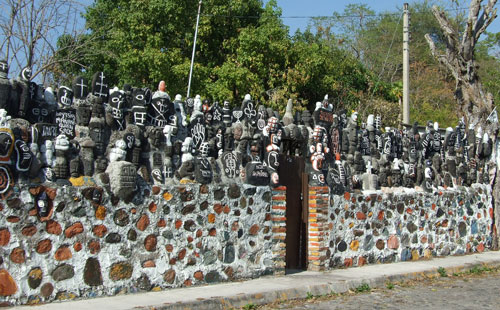 Here's a wall in La Becerrera decorated with masks hand-carved in volcanic rock. This and another nearby village had tiendas (shops) selling masks carved out of wood.
