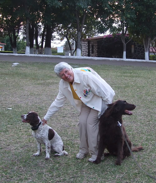 And here's Ginny with Meg and Madigan. The LaMaria campground was nice for the 4 caravan dogs, they had plenty of room to run around or go for walks. Unlike the beach campgrounds, there were no sand burs here to stab their feet.