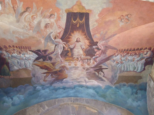 This beautiful mural covers the ceiling of the entrance to the Cathedral. Unfortunately, we don't know the artist.