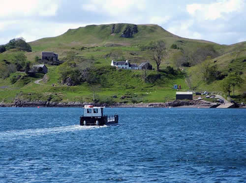 The Inner Hebrides are the 40 or so islands close in to the West Coast of Scotland. We visited several of these on the 4th leg of our UK trip. First, from Oban, we visited Kerrerra which protects the Oban harbour. Here's the ferry to Kerrerra from Gallanach, just south of Oban.