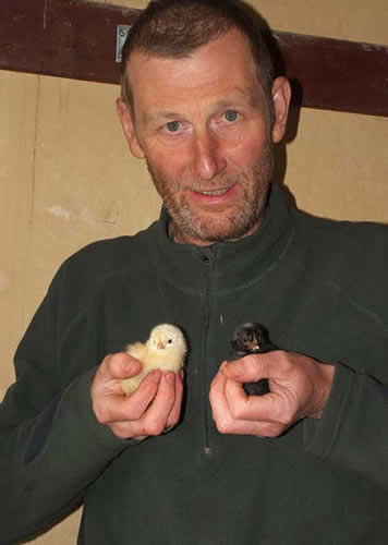 Meanwhile Kevin is raising two batches of day-old chicks produced by the