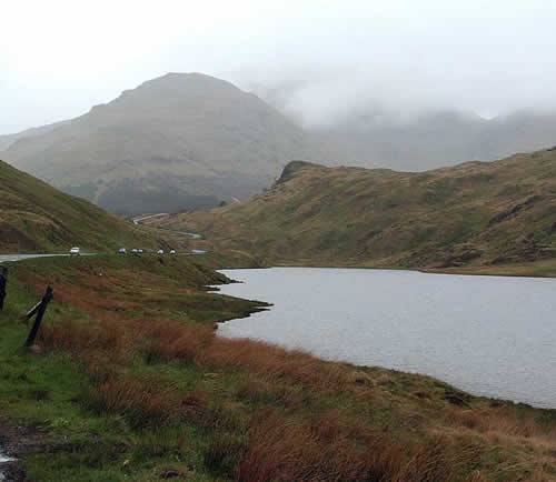From Kilmacolm we drove northwards along Loch Lomond, and then up the Rest-And-Be-Thankful pass towards Inverary. Here's the road up the pass - when we arrived it was blocked with a nasty accident at the top.