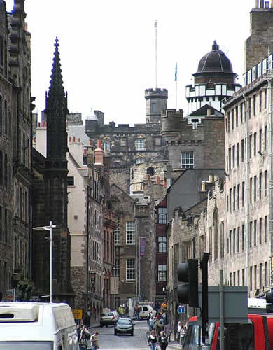 We spent a day in Edinburgh, not nearly enough. The city was formerly known as Auld Reeky because of the stink from all the chimneys. No wonder much of the stonework is blackened. Here is a view up the Royal Mile, stretching between the Castle and Holyrood Palace.