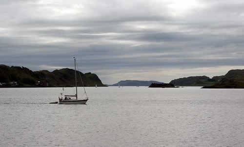 Here's a view of the sound of Kerrera from the Oban seafront, where we stayed in a self-catering apartment. This is the view that Pat grew up with in a house a little further along the seafront.