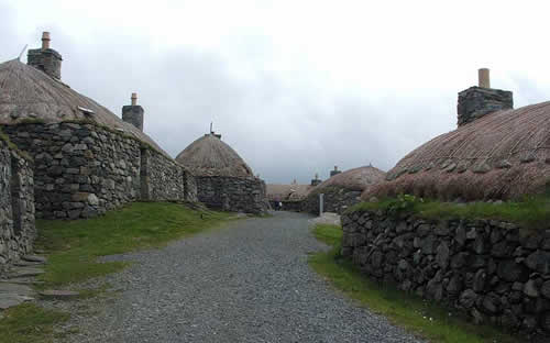 At Na Gearrannan we found a village of "black houses" formerly home to weavers of Harris tweed. The buildings are thatched dwellings without windows. This village has been maintained with a working museum and occupied cottages - you can rent one for your holiday.
