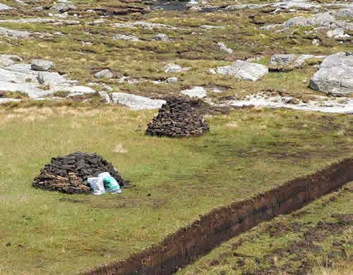 Peat is an important source of fuel for the islanders, though increasingly it's being replaced by oil. Here's a peat cut, with a pile of peat blocks drying (not always a quick process given the rainy climate.)