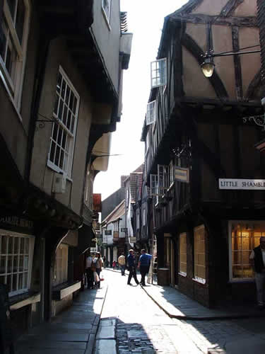 Part of the old city of York remains in the Shambles, an area of ancient houses, shops, and narrow streets.