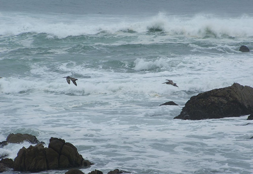Pelicans surfing, California