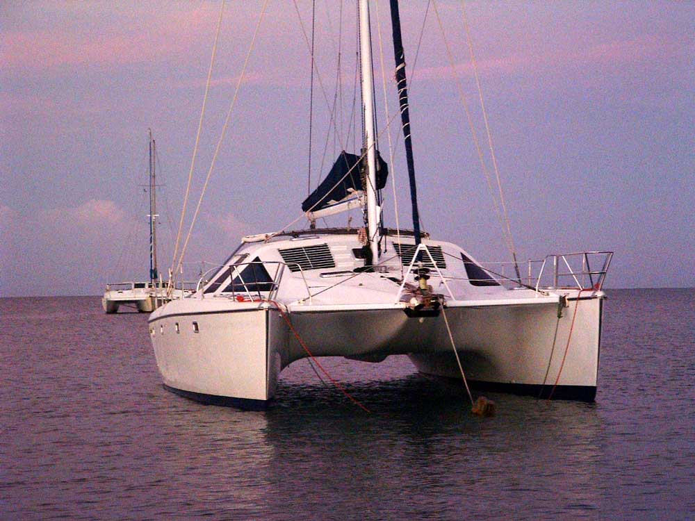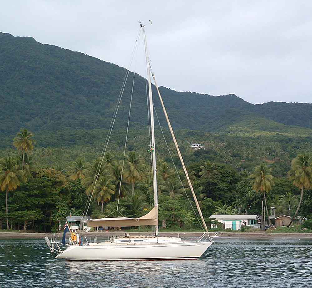 Anchored in the Riviere Salee, Guadeloupe, French West Indies.