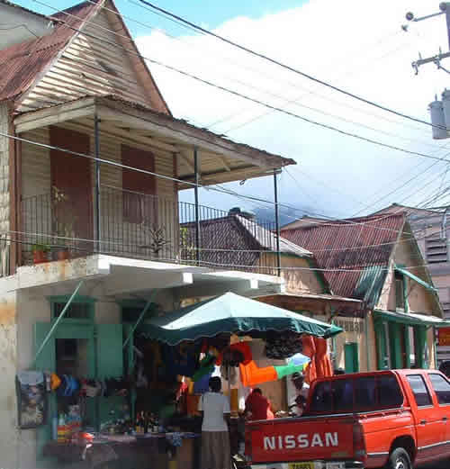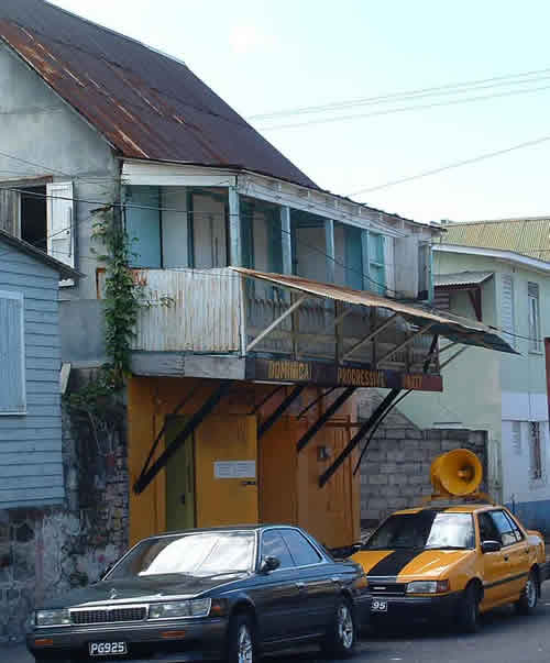 Two boating mysteries this week has everyone abuzz on Eric's ham net (0630 hrs, 3855LSB). (1) Dutch-flagged 50' sailboat, Nelson found drifting empty and dismasted off St. Vincent a week ago--whereabouts of crew unknown. (2) Brand new 57' Beneteau sloop, nameless blue hull with white stripe, center cockpit, blue bimini, stolen from Charleston City Marina in South Carolina on the night of January 7. Hams reported boat matching this description seen in St. Lucia a few days ago and is currently anchored in Bequia--turned out to be a demo boat crewed by Benetau staff. Stolen boat still at large. Monday we took the bus to Roseau, Dominica's capital, reminiscent of Dominican Republic experience--excellent transportation system, privately owned vans running an inexpensive bus service, schedule according to when they get passengers. 50-minute trip along scenic west-coast, $8EC one way. In Rouseau, we wandered round the downtown area, and past the market Among other street scenes we saw the headquarters of the Dominica Progressive Party gearing up for the next election. Dominica's prime minister died suddenly last week. Enjoyed Happy Hour with Mike and Jean on lean little Calpurnia, British racers from London. Swells from Atlantic storm arrived and made for a rather rolly night. Tuesday morning, the Moorings contingent left anchor and practiced their sailing skills for a while, before they left headed north leaving our depleted anchorage to return to its peace and quiet. What a great time those charter boat crews seemed to be having--a fortunate few, as indeed are we. So much disparity in the world, such grinding poverty and/or misery in many places.