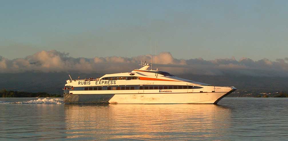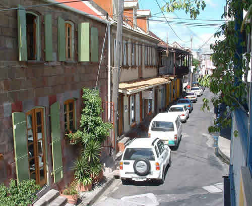 Tuesday, finished going through the mail and organizing the resulting "todos" (paperwork, items to mail and e-mail, phone calls to make). Listened to new weather net in David Jones former time slot--Chris Parker, Bel Ami, 8104.0Hz at 0830 hours, and 12359.0Hz at 0900 hrs. Generally listen to Eric, George, and now Chris each morning--each gives a somewhat different weather perspective, and every day learn a bit more about this highly complicated subject. Learned that on Monday Tropic Kat finally arrived in Bequia from Gran Canaria (44 days in transit). Appears that Lancelot's dinghy and crew member are well on their way to Panama or Puerto Rico. Hope evaporating for finding him. Lancelot didn't put word out for search until he was missing for 2 days--long enough to be deadly in a dinghy--especially when the occupant has no safety or communications equipment. Wednesday, rented a car and drove to Fort de France. Had a thoroughly enjoyable day wandering round the Center City, visiting the Dillon distillery, and provisioning at the huge Hyper U Supermarket in the Galleria shopping mall. The French certainly know how to eat well! Viewed the anchorage on the north side of the bay near the cruiseship dock, and also at the east end in Cohe de Lamentin, near the airport. Found several traffic jams to detract from the good and well-marked roads. Thursday, worried and worked through paperwork stuff from recent mail (at least we only get it every 4-6 weeks) using Internet and phone card. Yuk. Tax time. Stood in line for 30 minutes at La Poste to send mail to the U.S. Prepared for moving on to Anse Mitan--checked with customs, no need to clear from LeMarin, we should clear out from Fort de France. Wrestled with and solved an annoying laptop problem (Windows ME operating system is bug-ridden) with assistance of Charlie durimg Happy Hour on Kameloha where we met Greg and Sylvia on Kish, another Tayana 37. This morning, upped anchor (a lot of growth on the first 25' of chain had to be scrubbed off as it was being hauled in) at 0835 hours, and headed over to the fuel dock. Had to circle around for about 30 minutes before space opened up on the dock. French boat jumped the queue ahead of us. Refueled and rewatered. Left the fuel dock at 0950 hours and headed out through the channel. Wind dead astern, so hauled out the yankee and motor-sailed. Passed between Diamond Rock and the mainland, and turned to the northwest, continuing to motor sail. At noon headed round to enter Baie de Fort de France and battled our way against the wind to find the bay at Anse Mitan, avoiding a freighter and numerous ferries. Dropped anchor in 20' at 1405 hours. 28.3 miles by the log, avg boat speed 6.6 knots. Speed over the ground, 5.75 knots. Rather crowded anchorage, and frequent rolls from ferry wakes. Lovely view of Fort de France. Gave sweet Callipygia a bath with fresh water and Joy and--lo--along comes a nicely timed quick downpour to wash her off. Large Finish luxury catamaran Wenda Coral came in and anchored right in front of us, probably blocking us from leaving and poised to fall back on us in a blow. Charter sailors are often blithely unaware of cruising etiquette and safety procedures. No weather anticipated, deal with that in the morning. These huge catamarans look like Darth Vader. Current plan is to stay here for a few days, taking ferry to Fort De France and enjoying the village of Anse Mitan, then head north to St. Pierre to briefly visit the devastation from the 1995 eruption of Mt. Pelee, and from there go to Portsmouth, Dominica, and sight-see there for a bit before heading for Guadeloupe.