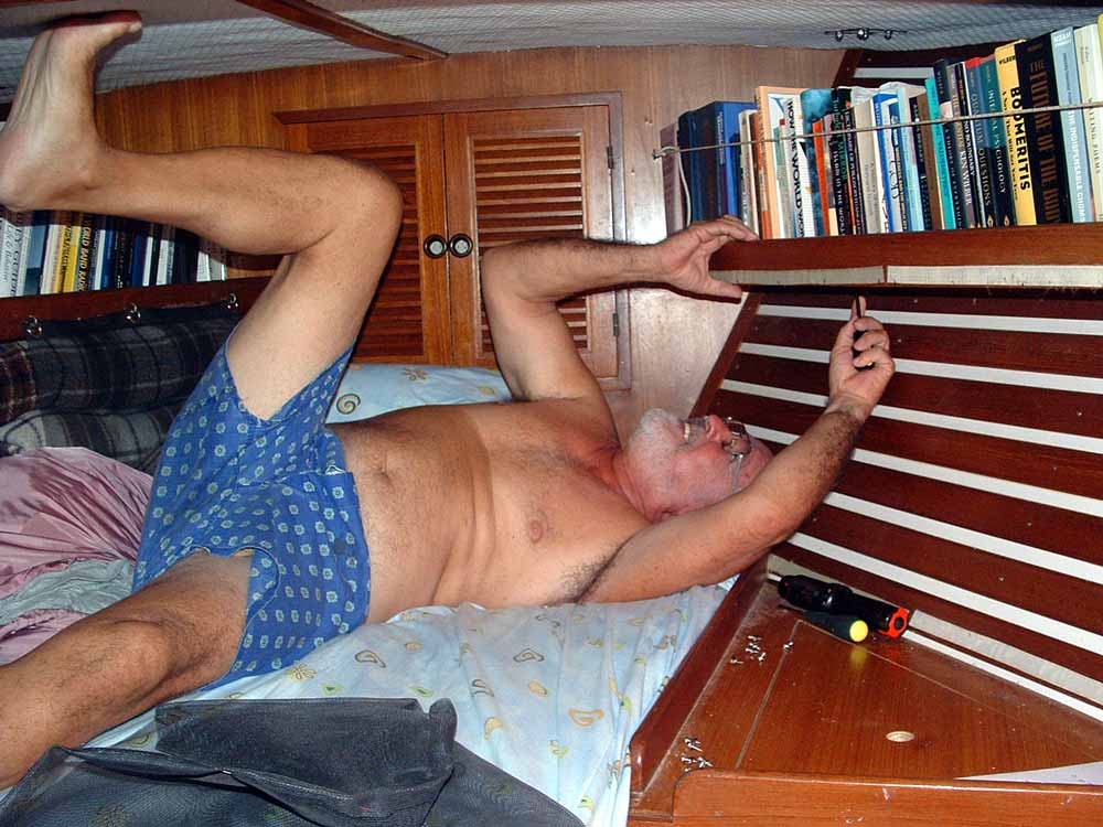 Towards the end of the week, pre-crossing anxiety arrived in earnest. That combined with the chaos in the cabin (things everywhere), the overwhelming number of details to attend to, and the inability to do morning email because radio propagation in the marina sucks, has made for some edgy times. Reread the ship's logs for 2001 and 2002, our beginner years. Helped us reassure ourselves that we actually can do this ocean crossing. Spent some more time with Gary, our singlehanding friend on Samen, and Chinook both of whom will be crossing about the same time as us. Learned from Chinook how to make yoghurt and bought thermos jar to make it in--hangs perfectly in the main cabin. Their gift yoghurt sample, made with full cream milk powder, was as good as any we've ever tasted.