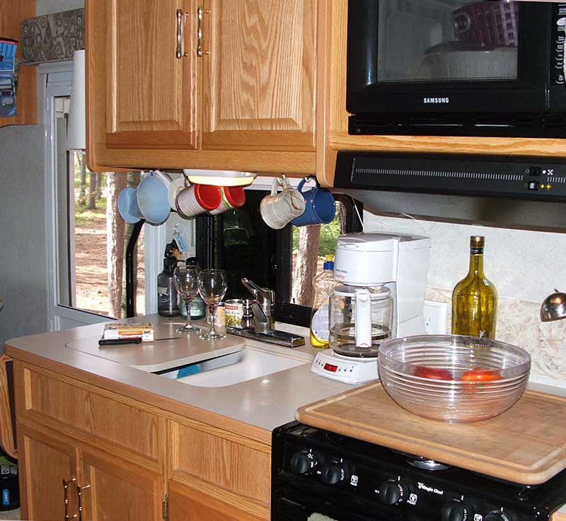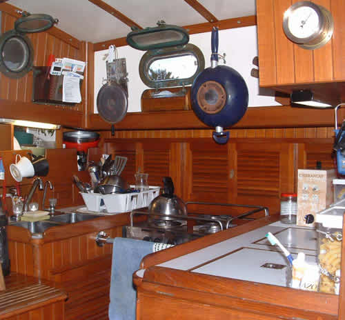 On many boats, the female is a galley slave. The same is true on RV's. That wouldn't work for us--there'd be a mutiny in short order. Instead, we take turns being responsible for each evening's meal--and, since in our home whoever cooks also cleans up, this means we each get alternative days "off" from galley duty. We like this arrangement a lot. Breakfast and lunch are more ad hoc.