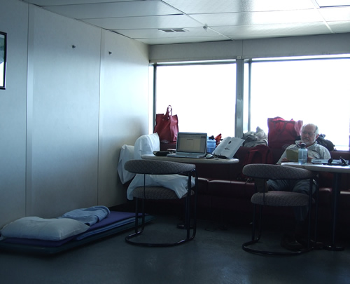 We enjoyed our short week in Juneau, some rain, some sun. Last Saturday afternoon we made the 12 mile drive to the Auke Bay ferry terminal and into the, by now familiar, ferry routine. Back onto the Malaspina with Bill going as a walk-on as soon as the arriving passengars disembarked, while Pat waited in the line with Clemmie. We staked out a spot in the rear lounge on the cabin level, parked ourselves and our stuff, inflated the Thermarest pads we borrowed from Rorie, rented pillows, blankets and towels from the Purser, and settled in. There was no chance of a cabin for the 3 overnights to Bellingham; with 2 major boats out the remaining ferries are filled to capacity. Ferry staff memories couldn't recall a year when 2 had been out at the same time. We were unfortunate to be booked on both of them. Nonetheless, we enjoyed our trip. Rain, fog, and overcast to Ketchikan; from there clear after each morning's fog all the way to Bellingham. Disembarked this morning at 7am Alaska time (8am in Washington), drove to a nearby supermarket and did some major provisioning. With the propane turned off on the ferry for 3 days, it had been necessary to empty, defrost, and leave open the 'frig and freezer for the trip. Turned the propane back on, bought ice to help the 'frig/freezer recool. We have a "smart" unit, if there's a 110-volt electrical supply available (from plug/hookup or generator) it runs on electricity, and if not it automatically switches to propane. These RV's are amazing. From Bellingham we drove north on I-5 about 20 miles then exited west to this nice State Park for a few days to decompress. 39 road miles since leaving Juneau. We are happy not to be bumping and grinding our way for the additional 1,600 road miles through Alaska, the Yukon and BC. We missed some views, and a few sights - but mostly a lot of in-between. These northern lands are vaster than one can imagine without experiencing it. We enjoyed the ferry trip, even without a cabin/stateroom. Driving is losing its appeal for us, we are now more into being somewhere than getting there.