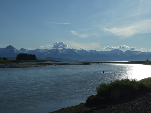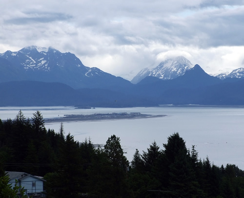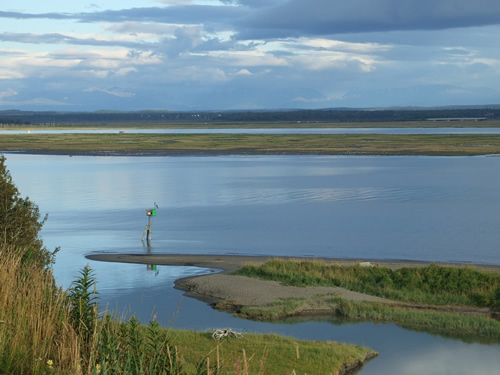Said goodbye to beautiful Homer Thursday morning after an early breakfast. Back north along the only road to just south of Soldotna, where we took the beach route to reach Kenai. 84 miles. This is the second oldest town in Alaska, and the most populated (7,000) on the peninsula. Stopped at the visitor center and supermarket before arriving here. We're sitting on the edge of the bluffs above the sand-dunes that mark the mouth of the Kenai River. Declinining Beluga Whales often are seen looking for salmon from here near high tide (range is 18-26') this time of year. It's an interesting, quiet, spread-out little place. Visited the nearby Orthodox Church and chapel, founded during the Russian period. The rivermouth is immense, nearly dry at low tide. We're hanging here for a few days, and then to Seward. The views from Clemmie's windows this last few weeks have been to die for. This afternoon we found an email from the Alaska Marine Highway system, our ferry from Juneau to Bellingham (Columbia) has been withdrawn from service; she blew a piston on the main engine yesterday. Lucky we had WiFi and cellphone coverage both to get the message and to be able to make alternative arrangements (there is vehicle space on the Malaspina a few days sooner than our booking on the Columbia, but no cabin space is left.) Tomorrow, Seward.
