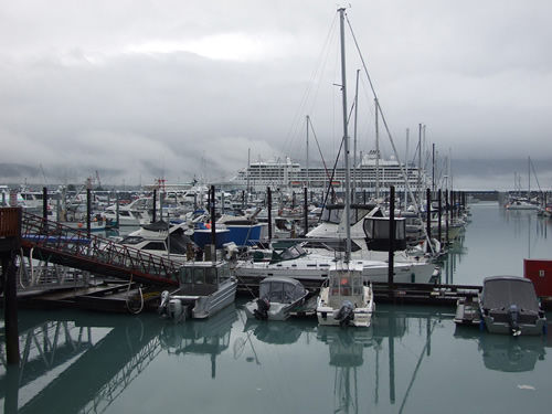 The mixing valve at the sink disintegrated on Sunday and Bill spent Monday plumbing. A new faucet with the requisite fittings could not, alas, be found anywhere in this (really small) town. So we have a gallon water jug instead of a kitchen faucet, a minor inconvenience for the moment. Checked email this morning as well as the Whittier Tunnel website and the Alaska Marine Highway System (AMHS) websites for ferry changes. Learned that the Kennecott (our tomorrow's boat) damaged its rudder at Kodiak yesterday. Googled the news for some scant details. Called the ferry system, it appeared the rudder was going to be repaired, so our crossing is still on schedule. Next stop Whittier and the ferry across the Gulf of Alaska to Juneau.