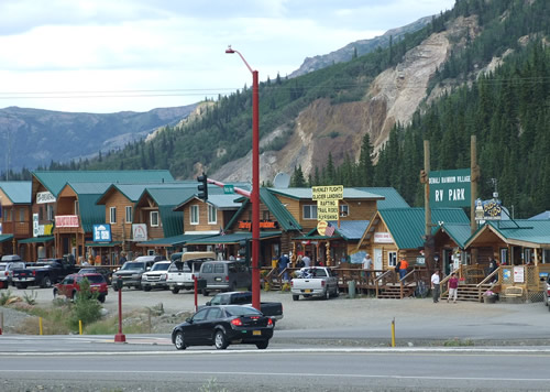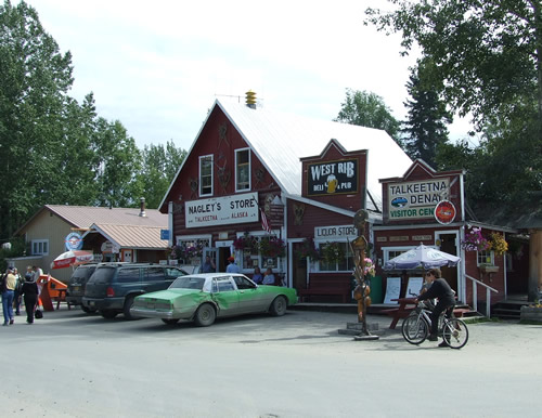 Up before dawn yesterday morning, having gone to bed "road ready." Drove out of Teklanika Campground at 4:10 a.m. hoping for good sunrise views of Denali, the mountain. Kind of cloudy, though, and it wasn't out. Nonetheless, stopped just this side of the Savage River checkpoint to run the generator, make coffee and breakfast. The view improved as the sun rose. Then finished the 30-mile drive out of the National Park to the Parks Highway. Easy driving south, good road going. Pulled in/over for some views (they improved as we went south) at the Denali State Park North and South viewpoints, and then a great highway shot. Turned off on the Talkeena Spur road and drove 15 miles to this historic little town, stopping for a terrific mountain view on the way in. Settled in at this nice little park, ½ mile from town. 181 miles and it was only 10:30 a.m. Went for a walk through town to get oriented, then home for some down time. Decided to stay two nights before continuing on to Anchorage. Good free WiFi and badly needed showers. Continued work on accumulating pile of photos. Enjoyed the ambience and food at the Talkeetna Roadhouse, built in 1910 and serving food and hospitality by the same family since 1944. Great sourdough pancakes (starter from 1902) for breakfast. Watched the tourists come and go on buses and train, and listened to helicopters and bush planes taking them on flight-seeing trips. Somehow we don't quite feel like tourists, though we are - but of a different ilk.