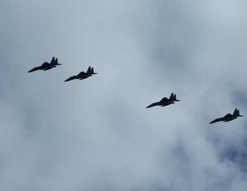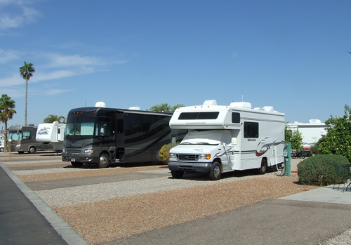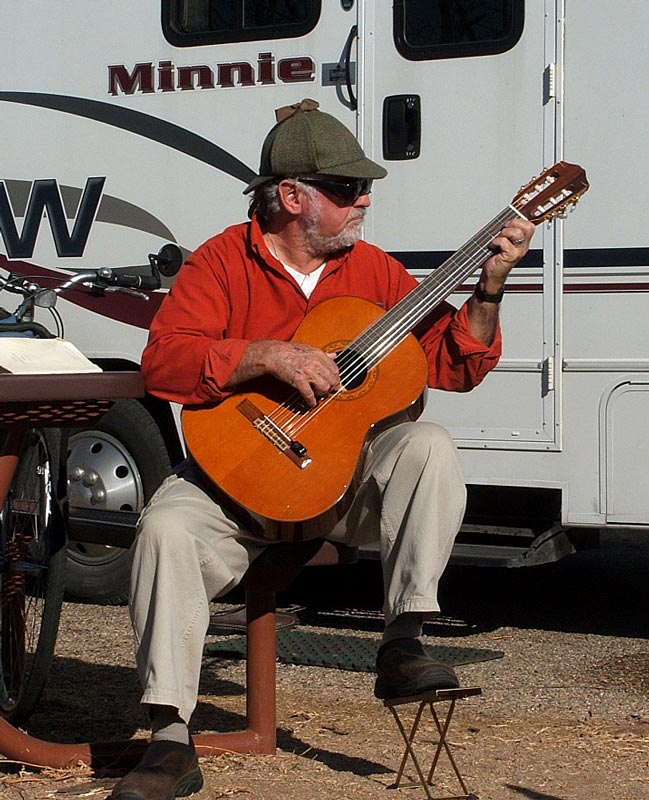 Busy times. Spending money. Drove the 35 miles to Tucson from Amado early Thursday morning and lined up at LaMesa RV to get our converter replaced and miscellaneous other minor Clemmie matters attended. Spent most of the day in the customer service waiting room or across the street buying a few items at Camping World where we cruised the alleys looking wide-eyed at all the stuff we don't need. This is our second visit to LaMesa, and we're happy with the service provided. Decided to spend the night at this resort RV Park behind Camper's World. Yesterday, another get-it-done day. First to the TCI Tire Center in Tucson to get a better solution to the rear-tire stem problem that ended up with us having 2 deflated tires on the road to Mazatlan. Between our confusion and some miscommunications it ended up taking 4 hours, but ultimately we're happy with what they did, and at no charge too. Then we turned Clemmie into a car and drove to two guitar/music stores (helpfully across the street from each other) where we ended up in The Folk Shop with Pat buying a wooden recorder and Bill getting leads to potential guitar lessons. From there to Fair Wheel Bikes to order a Thule T-2 bike rack (we've been busy doing our research since we crossed the border and this is the closest thing we could find to the ones that go on the front of buses) and 2 replacement bikes. Decided to come back here to veg out for a couple more days. And do our taxes since there's WiFi here. Turned on our air conditioner and sank back in the heat. Mid-90's under blazing sun with Blue Angels loudly streaking by above, sucking up fuel and making stinky brown smoke patterns in the blue. At the air show yesterday we could have had ringside seats if we sat on Clemmie's roof. Too hot.