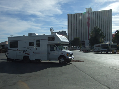We left Death Valley after a sunrise view, drove east to Las Vegas, arriving at this campground before lunch. Decided one day here would do it for us. We Cruised a couple of Casinos on the Strip, ate an expensive (and good) dinner, and then went to a show. Packed into 23 hours what we thought was the appropriate Las Vegas experience. Nothing drew us to the gambling tables or machines, except for the people watching.