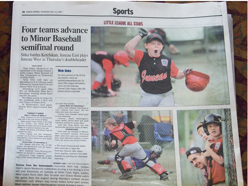 A week ago, up before dawn. The days are getting longer and we're going south, so we're beginning to see signs of darkness. Pat dropped Bill off at the Anchorage airport a bit before 6 a.m., and proceeded to drive Clemmie south on the Seward Highway to the Kenai peninsula. Cloudy and overcast so the magnificence of the Turnagain Arm somewhat obscured. Soon after Portage at the head of the Arm (town was abandoned since the 1964 earthquake) turned onto the Sterling Highway going west along the Kenai River, through Cooper Junction, and Soldotna. Then south along the Cook Inlet coast. Came over a hill to get a magnificent view of Homer and the mouth of Kachemak Bay. Into this little town with stops at the Chamber of Commerce Visitor Center and the magnificent Alaska Islands and Oceans Visitor Center (assorted federal agencies.) Then out along the 4-mile spit to this busy campground. 230 miles. Meanwhile, Bill zoomed across the sky with a stop in Chicago before arriving in Portland, Maine, for Ashley's wedding and a week of family time. It was cold and often raining in Homer. Hot in Maine. Pat decided to spend her rain time at home in Clemmie, and wait to see the sights with Bill when he returns. She paid for a week's worth of Homer WiFi - which turned out to be so annoyingly erratic as to be nearly worthless - compensated for by a nice view of the beach, tenters, and fishing goings on. Had her daily walk to the harbour, the fishing hole, and just people watching. The place is a zoo, it's the height of the salmon season. Among other at-home projects, she's learning Flash, in the hope of adding fun and improved graphics to the website. [She has secret ambitions as a cartoonist as well as a writer.] Bill is loving his family time in Maine. All's well with both of us.