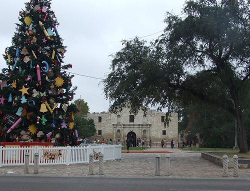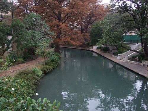 We enjoyed our time in Austin, hiked a bit, talked a lot, and just generally hung out. Cold nights, though, relied on Harry the heater most of the time. Bill had 2 guitar lessons with Paul Clancy, and Pat went on a quilting run with Andrea and to the monthly meeting of the Austin Area Quilt Guild where Andrea displayed two quilts she made for Christmas gifts. We left around 8am on Tuesday and drove south on I-35 to New Braunfels. Eventually found our way to BlueBonnet Ford to get Clemmie's oil changed, and the cruise control fixed. Took pretty much all day, but the place had nice waiting facilities with high speed Internet put to use processing photos from Death Valley. Continued on south to San Antonio, skirting the city to the east on Loop 13, then north up Roosevelt Avenue to this pleasant RV Park abutting a golf course and the river. Did 4 loads of badly needed laundry, finished paperwork from our recent batch of mail, and got Clemmie detailed inside (carpets and upholstery cleaned.) She's held up well with our (now) 3+ years of full-timing. Provisioning here is not easy. Nearest are WalMart's (a hot 1.3 mile walk south, or bus ride) or the Fruteria Los Amigos a mile north. We're getting some steps. Good biking and birding along the adjacent Mission trail, visited Mission Concepcion and the Alamo. Twice we took the bus to the center of the city, walked the pretty and touristy River Walk, visited the Mexican market hoping for produce, no luck. It's been hot (80's daytime, 60's night-time) and then cold (29 one night, high only 48 another day.)